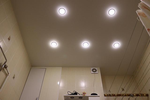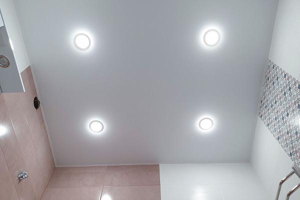 Натяжные ПВХ потолки отлично подойдут для установки в ванной комнате. Полотна обработаны специальными антигрибковыми добавками и препятствуют появлению грибка и плесени. Также натяжные потолки очень прочные, они не раз спасали квартиры от затопления. Потолки выдерживают до 100 кг/м2.